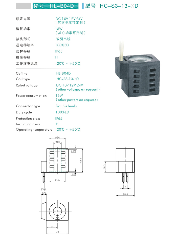 HC-S2-13-XD-插裝閥用線圈 當前位置: 網站首頁 > 產品中心 > 萬爾福線圈 > 插裝閥用線圈